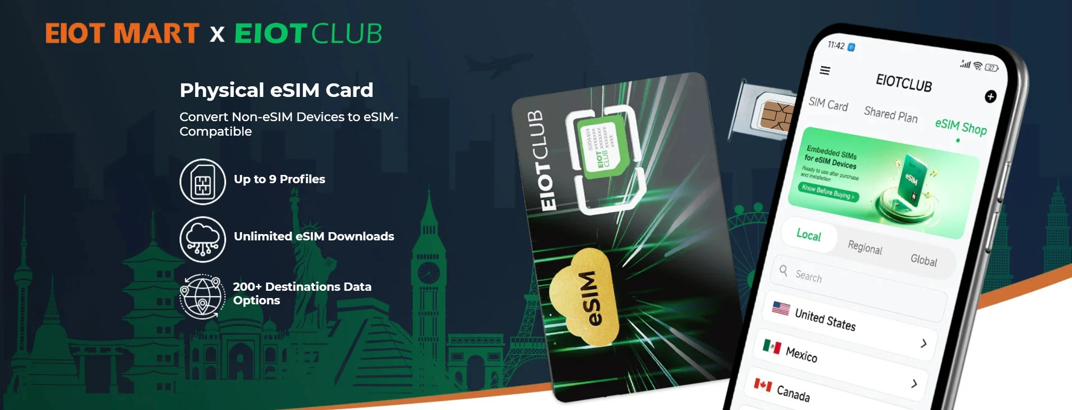 The EIOTCLUB eSIM card is a new technology that makes your loT devices or Android phone compatible with eSlM technology.